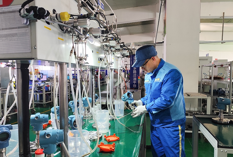注油工序將“精打細算”發揮的淋漓盡致。硅油作為制作法蘭變送器的必需品,在注油方式未改進前,每一臺變送器注油量的多少,只能根據人為的經驗去判斷,沒有確切的使用標準,這就造成了制作前對硅油進行加熱處理的用量很難把控。制作完成后剩余硅油含有雜質,不能二次使用,長此以往,造成廢舊硅油的堆積。為解決這一瓶頸,注油臺增加抽濾瓶裝置,對剩余硅油利用抽真空方式進行雜質過濾,廢舊硅油得到了最大限度的利用。同時改進注油方式,根據毛細管的長度以及硅油密度計算出準確的注油量。3米、5米、8米……各類型毛細管法蘭變送器的注油量得到了精準把控,經過改進后,原來每月20公斤硅油的使用量,降低到現在的10公斤,并且利用率至少提高了50%。